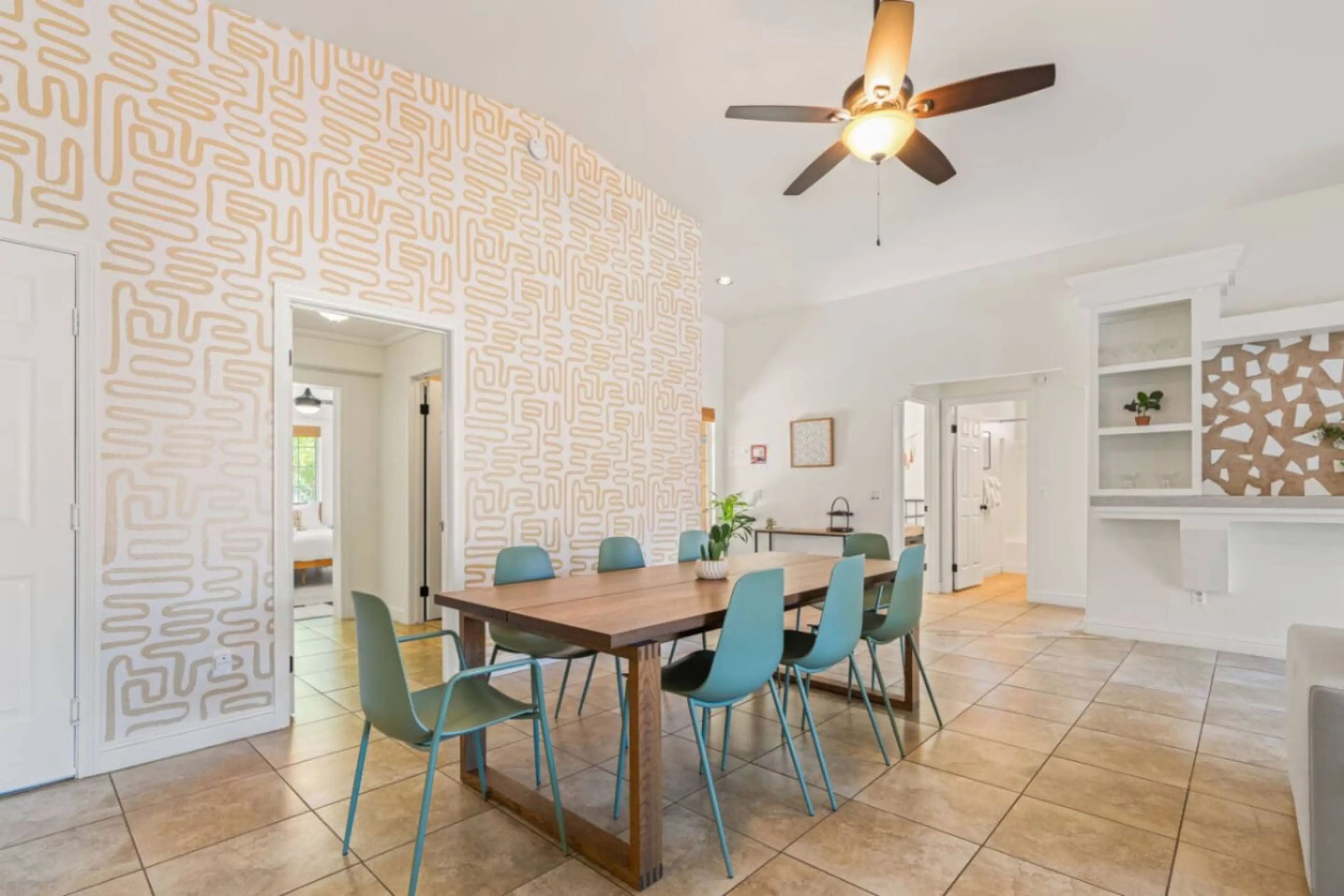 We found a true gem in the desert. We had a wedding close by and this house was perfect for our entire family to get ready for the big day. The house is very spacious and clean. The decor is also very stylish and still kid friendly. We enjoyed the firepit and hot tub the entire time. The owner is very helpful and quick to respond to any messages. This house was about a 15-20 min drive to the heart of Palm Springs and is a great spot if you have a large group in town. It's quite and a great retreat. We will be staying here again if we are visiting again.